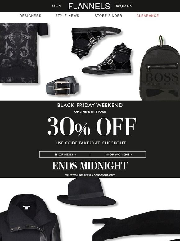 Last day! BLACK FRIDAY PROMOTIONS 30% off and a £10 voucher for every £50 spent! – Flannels