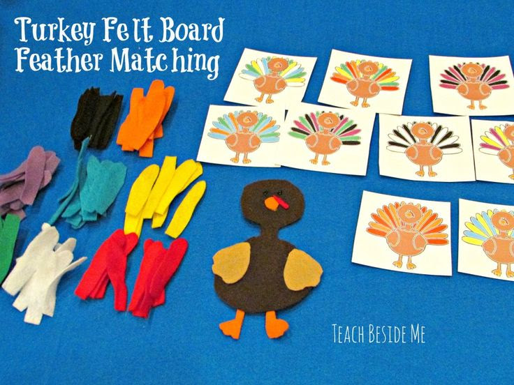 turkey felt board- the patterns are a bit small for my toddlers to use, but it is a wonderful idea. I am going to try making the turkeys about 6-8″ tall with about the same size feathers.